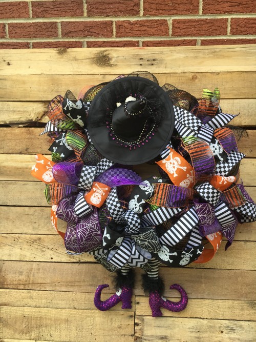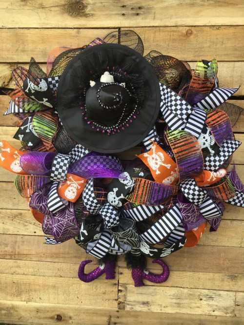 Measurements of this spectacular Fall door wreath are approximately 27″ in diameter, 13″ deep. This wreath will not fit between most doors but can be hung on the outside of your door. I do recommend this be hung on a covered porch or overhang to protect against the elements.